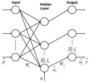 ) added. This neuron input is transformed by a hidden layer transfer function f1 into a neuron output (element of a vector