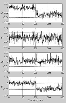 after the testing cycle 200. The resulting estimations for four state parameters are plotted in Figure 1. It is evident from the plots Θ1