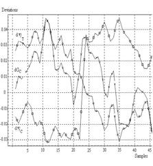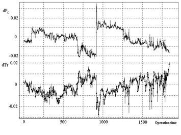 of measured parameters, determined on the first identification step, are shown in Fig.1. The deviations are not so great and mainly do not exceed the level of 2%. The parameter jump after the cleaning (points 917-918) and total parameter degradation due to fouling are well distinguished. Thus, the model (1) satisfies the requirements for a norm function in gas path monitoring algorithms of the automatic diagnosing system.