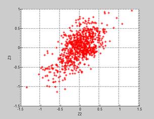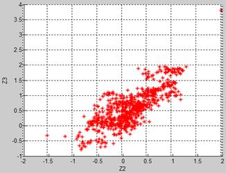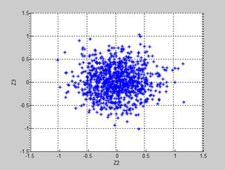 This scheme is illustrated by Fig.4b. As it was expected, practically all simulated normalized errors are distributed inside the intervals (-1.0,1.0) and no correlation is observed. The latter can be considered as a disadvantage because the correlation produced by Type II errors and expected in real deviations is absent.