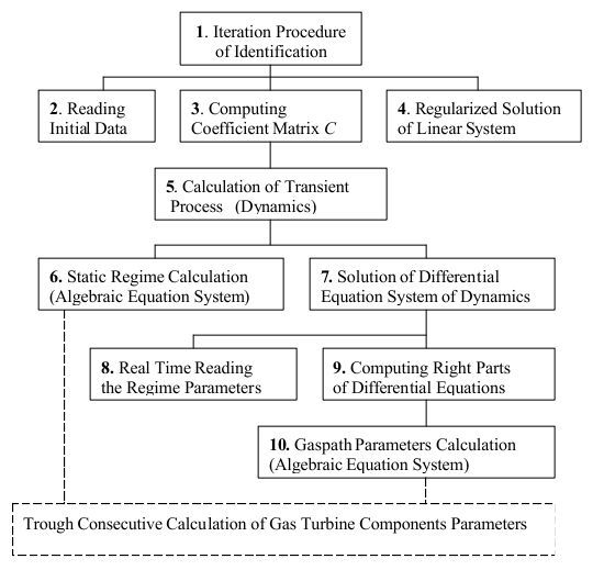 Developed software of the nonlinear dynamic model identification presents a complex program package and approximately consists of 70 program modules. Block-scheme of the program package (see Figure 1) includes 10 module of high level. Other modules, directly related with gas turbine components calculations, are united in the lowest block.