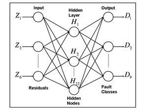 Before performing principal calculations described above, some preliminary studies have been performed. As a result, optimal parameters of the fault classifications and networks have been found. In particular, the numbers of 700 simulated patterns for each single fault class and 1000 patterns for each multiple fault class were established. Basic and enlarged numbers of hidden layer nodes were chosen as well: 12 and 24 for the perceptron, and 27 and 90 for the RBN.